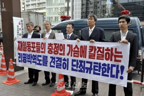 리명박역적패당의 특대형도발행위를 단죄규탄하기 위한 항의투쟁이 4월 25일 도꾜에 있는 주일남조선대사관 앞에서 진행되였다. 간또지방관하 총련일군들과 동포들 150여명이 항의단을 무어 강력한 항의투쟁을 벌렸다.