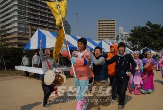 효고조선가무단의 민요련곡에 맞추어 참가자들은 맑게 개인 하늘아래서 흥겨운 춤판을 벌리였다.