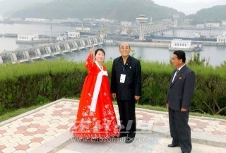12일에 서해갑문을 참관한 범민련 남측본부 로수희부의장(사진중앙, 조선중앙통신)