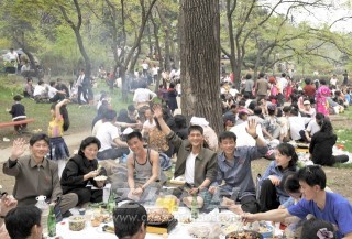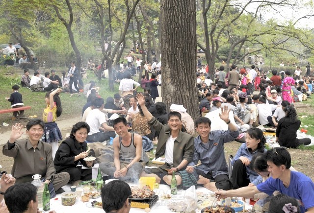 기업소단위로 들놀이 나와 즐거운 한때를 보내는 시민들(모란봉)