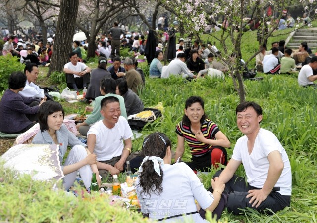즐거운 시간을 보내는 시민들(모란봉)