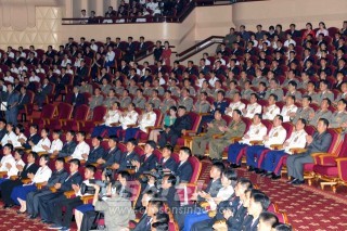 김정은원수님, 청년절경축행사대표들과 함께 은하수음악회 관람