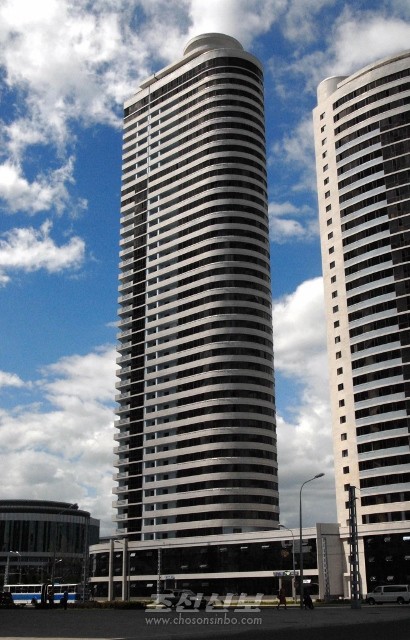 장영길씨 가족이 40층에 사는 고층아빠트(왼쪽 건물, 사진 리상영기자)