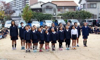 이따미초급에서 《학교사랑운동》, 학생, 원아들이 《과업》수행에서 분발