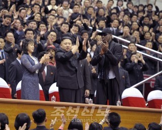 김정은원수님, 조선과 미국롱구팀 선수들의 혼합경기를 관람/데니스 로드맨 NBA 이전선수들과 접견 2