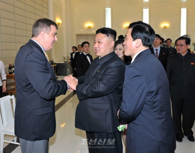 김정은원수님, 조선과 미국롱구팀 선수들의 혼합경기를 관람/데니스 로드맨 NBA 이전선수들과 접견 7