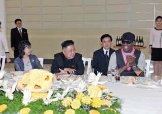 김정은원수님, 조선과 미국롱구팀 선수들의 혼합경기를 관람/데니스 로드맨 NBA 이전선수들과 접견 6