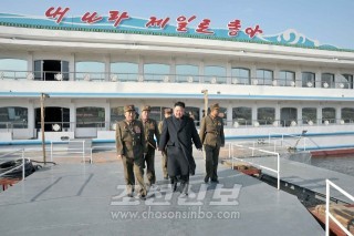 김정은원수님께서 인민군대에서 새로 건조하고있는 식당배 《대동강》호를 돌아보시였다