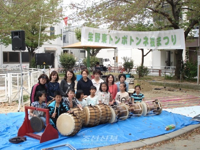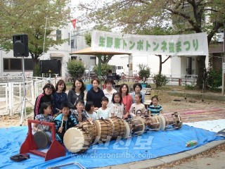 이꾸노동장고교실 《색동》의 소조원들이 사물놀이를 피로