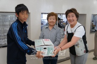 군마 세이모지역의 조일녀성들이 후꾸시마초중 방문/지원금을 전달