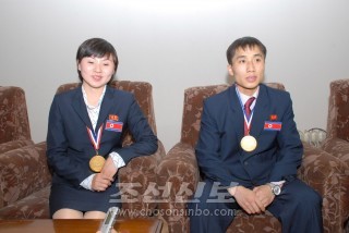 《승리의 보고 드리게 되여 기쁘다》/탁구우승자들, 기자회견에서 강조
