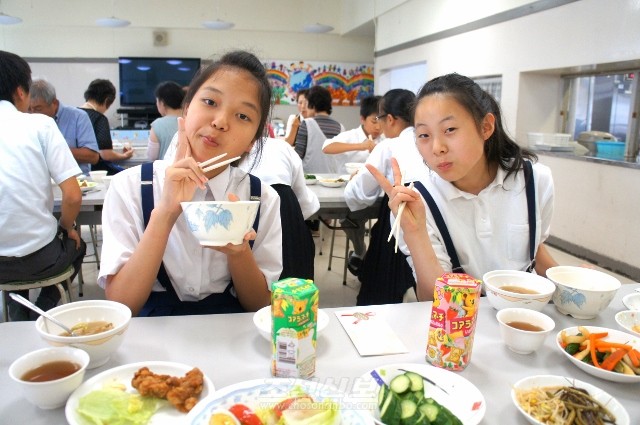 후꾸시마초중에서 《할머니의 날》 특식 장만