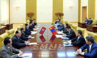 몽골 엘베그도르쥐대통령 조선방문/김영남위원장과 회담