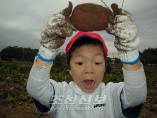 이바라기초중고 학생들이 벼베기와 고구마캐기