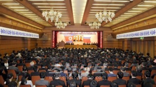 총련일군들의 궐기모임 진행
