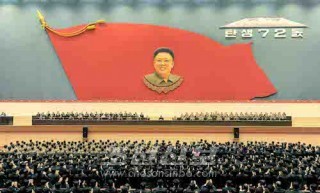 김정은원수님 참석밑에 김정일장군님 탄생 72돐경축 중앙보고대회 진행