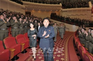 김정은원수님, 인민군장병들과 함께 광명성절경축 공훈국가합창단의 공연을 관람
