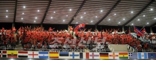 〈세계탁구선수권〉경기장에 메아리치는 《계속 전진!》