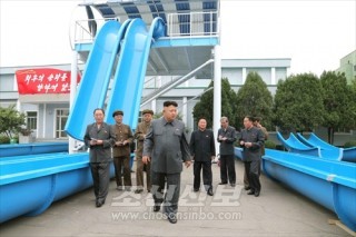 김정은원수님께서 인민군대에서 새로 제작한 급강하물미끄럼대를 보시였다