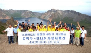 〈〈백두-한나〉자동차행진〉백두산정에서 출정식 진행