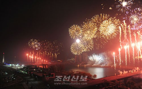 평양에서 태양절경축 축포 발사