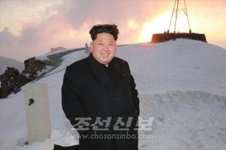 김정은원수님께서 조선인민군 전투비행사 백두산지구혁명전적지답사행군대 성원들과 함께 혁명의 성산 백두산에 오르시였다
