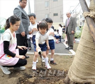 〈도꾜제6초급 준공식〉선대들의 넋이 깃든 감나무를 이식