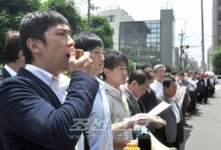 150여명의 일군들이 교또부경앞에서 항의/부당체포된 3명의 즉시석방을 요구