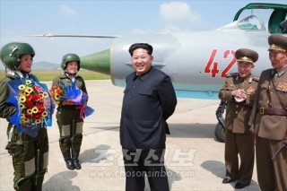 김정은원수님께서 녀성초음속전투기비행사 조금향, 림설동무들의 비행훈련을 보시였다