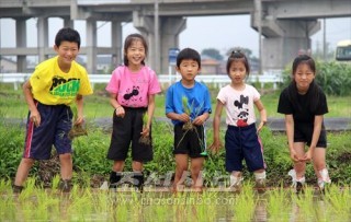 군마초중 학생들이 모내기를 체험/일본시민의 협력밑에