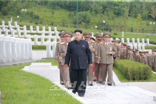 김정은원수님께서 조국해방전쟁승리 62돐에 즈음하여 조선인민군 지휘성원들과 함께 조국해방전쟁참전렬사묘를 찾으시였다