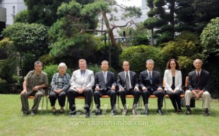 《도꾜국제심포쥼》참가자들이 조선회관을 방문/허종만의장과 면담
