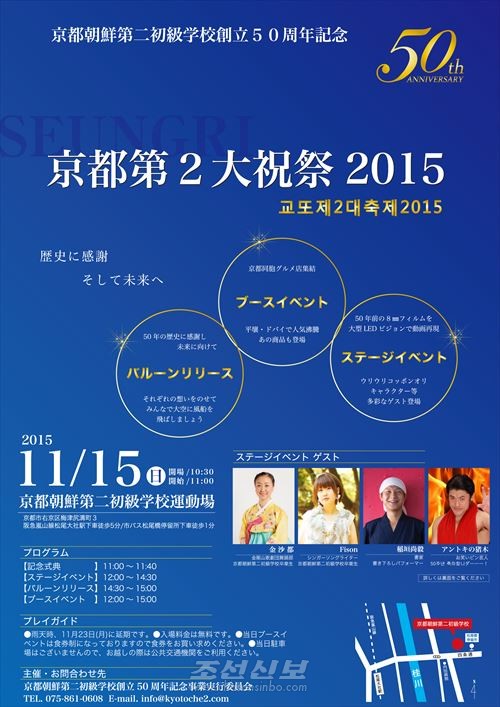 <blockquote class="wp-embedded-content"><a href="http://chosonsinbo.com/2015/10/il-814/%e2%91%a3%e8%a1%8c%e4%ba%8b%e3%83%81%e3%83%a9%e3%82%b750th_flyer_2_out_omote_r/"></a></blockquote> <script type='text/javascript'> <!--//--><![CDATA[//><!-- !function(a,b){"use strict";function c(){if(!e){e=!0;var a,c,d,f,g=-1!==navigator.appVersion.indexOf("MSIE 10"),h=!!navigator.userAgent.match(/Trident.*rv:11\./),i=b.querySelectorAll("iframe.wp-embedded-content");for(c=0;c<i.length;c++){if(d=i[c],!d.getAttribute("data-secret"))f=Math.random().toString(36).substr(2,10),d.src+="#?secret="+f,d.setAttribute("data-secret",f);if(g||h)a=d.cloneNode(!0),a.removeAttribute("security"),d.parentNode.replaceChild(a,d)}}}var d=!1,e=!1;if(b.querySelector)if(a.addEventListener)d=!0;if(a.wp=a.wp||{},!a.wp.receiveEmbedMessage)if(a.wp.receiveEmbedMessage=function(c){var d=c.data;if(d.secret||d.message||d.value)if(!/[^a-zA-Z0-9]/.test(d.secret)){var e,f,g,h,i,j=b.querySelectorAll('iframe[data-secret="'+d.secret+'"]'),k=b.querySelectorAll('blockquote[data-secret="'+d.secret+'"]');for(e=0;e<k.length;e++)k[e].style.display="none";for(e=0;e<j.length;e++)if(f=j[e],c.source===f.contentWindow){if(f.removeAttribute("style"),"height"===d.message){if(g=parseInt(d.value,10),g>1e3)g=1e3;else if(~~g<200)g=200;f.height=g}if("link"===d.message)if(h=b.createElement("a"),i=b.createElement("a"),h.href=f.getAttribute("src"),i.href=d.value,i.host===h.host)if(b.activeElement===f)a.top.location.href=d.value}else;}},d)a.addEventListener("message",a.wp.receiveEmbedMessage,!1),b.addEventListener("DOMContentLoaded",c,!1),a.addEventListener("load",c,!1)}(window,document); //--><!]]> </script><iframe sandbox="allow-scripts" security="restricted" src="http://chosonsinbo.com/2015/10/il-814/%e2%91%a3%e8%a1%8c%e4%ba%8b%e3%83%81%e3%83%a9%e3%82%b750th_flyer_2_out_omote_r/embed/" width="600" height="400" title="“” — 조선신보" frameborder="0" marginwidth="0" marginheight="0" scrolling="no" class="wp-embedded-content"></iframe>