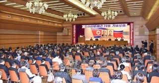 조선회관에서 《조선신보》창간 70돐기념모임