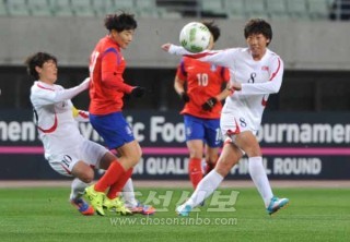 【사진특집】〈올림픽녀자축구 아시아최종예선〉첫 경기, 조선 대 남조선