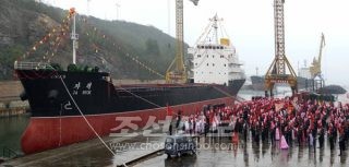5,000t급무역짐배 《자력》호 진수/당 제7차대회에 드리는 선물로 마련