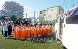 학교를 거점으로 힘있는 동포사회를/도꾜제1초중에 새 통학뻐스 기증