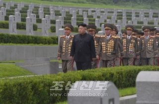 김정은원수님께서 조국해방전쟁승리 64돐에 즈음하여 조선인민군 지휘성원들과 함께 조국해방전쟁참전렬사묘를 찾으시였다