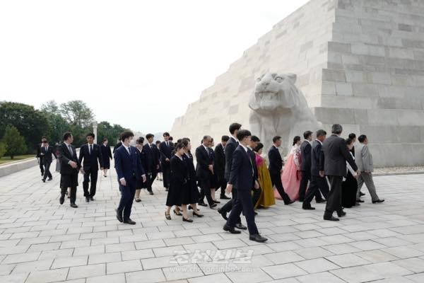 단군릉앞에서 개천절행사 진행/조선대학교 학생들이 참가