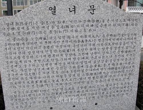 <blockquote class="wp-embedded-content"><a href="http://chosonsinbo.com/jp/%e7%83%88%e5%a5%b3%e9%96%80%e3%81%ab%e3%81%82%e3%82%8b%e8%a7%a3%e8%aa%ac%e3%81%ae%e7%a2%91-500x386/">烈女門にある解説の碑 (500×386)</a></blockquote> <script type='text/javascript'> <!--//--><![CDATA[//><!-- !function(a,b){"use strict";function c(){if(!e){e=!0;var a,c,d,f,g=-1!==navigator.appVersion.indexOf("MSIE 10"),h=!!navigator.userAgent.match(/Trident.*rv:11\./),i=b.querySelectorAll("iframe.wp-embedded-content");for(c=0;c<i.length;c++){if(d=i[c],!d.getAttribute("data-secret"))f=Math.random().toString(36).substr(2,10),d.src+="#?secret="+f,d.setAttribute("data-secret",f);if(g||h)a=d.cloneNode(!0),a.removeAttribute("security"),d.parentNode.replaceChild(a,d)}}}var d=!1,e=!1;if(b.querySelector)if(a.addEventListener)d=!0;if(a.wp=a.wp||{},!a.wp.receiveEmbedMessage)if(a.wp.receiveEmbedMessage=function(c){var d=c.data;if(d.secret||d.message||d.value)if(!/[^a-zA-Z0-9]/.test(d.secret)){var e,f,g,h,i,j=b.querySelectorAll('iframe[data-secret="'+d.secret+'"]'),k=b.querySelectorAll('blockquote[data-secret="'+d.secret+'"]');for(e=0;e<k.length;e++)k[e].style.display="none";for(e=0;e<j.length;e++)if(f=j[e],c.source===f.contentWindow){if(f.removeAttribute("style"),"height"===d.message){if(g=parseInt(d.value,10),g>1e3)g=1e3;else if(~~g<200)g=200;f.height=g}if("link"===d.message)if(h=b.createElement("a"),i=b.createElement("a"),h.href=f.getAttribute("src"),i.href=d.value,i.host===h.host)if(b.activeElement===f)a.top.location.href=d.value}else;}},d)a.addEventListener("message",a.wp.receiveEmbedMessage,!1),b.addEventListener("DOMContentLoaded",c,!1),a.addEventListener("load",c,!1)}(window,document); //--><!]]> </script><iframe sandbox="allow-scripts" security="restricted" src="http://chosonsinbo.com/jp/%e7%83%88%e5%a5%b3%e9%96%80%e3%81%ab%e3%81%82%e3%82%8b%e8%a7%a3%e8%aa%ac%e3%81%ae%e7%a2%91-500x386/embed/" width="600" height="400" title="“烈女門にある解説の碑 (500×386)” — 朝鮮新報" frameborder="0" marginwidth="0" marginheight="0" scrolling="no" class="wp-embedded-content"></iframe>