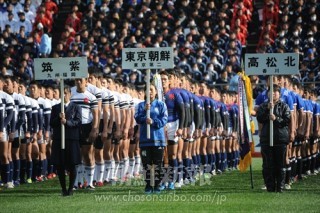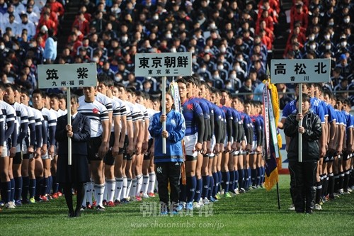 第95回全国高等学校ラグビーフットボール大会の開会式に参加する東京朝高ラグビー部