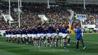 第95回全国高等学校ラグビーフットボール大会の開会式で堂々と行進する東京朝高ラグビー部