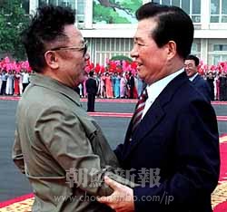 【19日、朝鮮中央通信】金正日総書記(国防委員会委員長)は15日午後、平壌訪問を終えて帰途につく金大中大統領を歓送した。(写真:朝鮮中央通信)