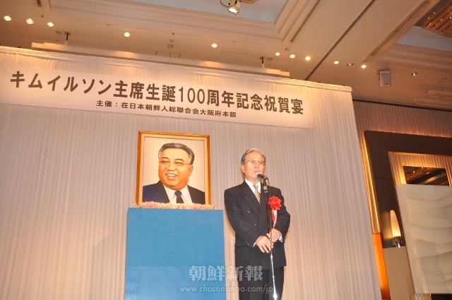 あいさつをする「日朝国交正常化の早期実現を求める市民連帯・大阪」の有元幹明代表 (640×425) (640×425)