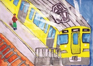 〈子ども美術館-第40回学生美術展 11〉ぼくと電車(水彩)