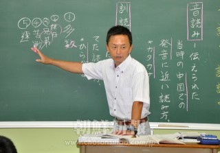 〈教室で〉尼崎初中 初級部教務主任・金輝栄教員