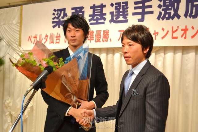 <blockquote class="wp-embedded-content"><a href="http://chosonsinbo.com/jp/2013/01/0122hj/%e3%83%b4%e3%82%a9%e3%83%ab%e3%83%86%e3%82%a3%e3%82%b9%e3%81%b8%e3%81%ae%e5%85%a5%e5%9b%a3%e3%81%8c%e6%b1%ba%e3%81%be%e3%81%a3%e3%81%9f%e6%9d%8e%e6%a0%84%e7%9b%b4%e9%81%b8%e6%89%8b%e3%81%a8%e6%a2%81/">梁勇基激励会</a></blockquote> <script type='text/javascript'> <!--//--><![CDATA[//><!-- !function(a,b){"use strict";function c(){if(!e){e=!0;var a,c,d,f,g=-1!==navigator.appVersion.indexOf("MSIE 10"),h=!!navigator.userAgent.match(/Trident.*rv:11\./),i=b.querySelectorAll("iframe.wp-embedded-content");for(c=0;c<i.length;c++){if(d=i[c],!d.getAttribute("data-secret"))f=Math.random().toString(36).substr(2,10),d.src+="#?secret="+f,d.setAttribute("data-secret",f);if(g||h)a=d.cloneNode(!0),a.removeAttribute("security"),d.parentNode.replaceChild(a,d)}}}var d=!1,e=!1;if(b.querySelector)if(a.addEventListener)d=!0;if(a.wp=a.wp||{},!a.wp.receiveEmbedMessage)if(a.wp.receiveEmbedMessage=function(c){var d=c.data;if(d.secret||d.message||d.value)if(!/[^a-zA-Z0-9]/.test(d.secret)){var e,f,g,h,i,j=b.querySelectorAll('iframe[data-secret="'+d.secret+'"]'),k=b.querySelectorAll('blockquote[data-secret="'+d.secret+'"]');for(e=0;e<k.length;e++)k[e].style.display="none";for(e=0;e<j.length;e++)if(f=j[e],c.source===f.contentWindow){if(f.removeAttribute("style"),"height"===d.message){if(g=parseInt(d.value,10),g>1e3)g=1e3;else if(~~g<200)g=200;f.height=g}if("link"===d.message)if(h=b.createElement("a"),i=b.createElement("a"),h.href=f.getAttribute("src"),i.href=d.value,i.host===h.host)if(b.activeElement===f)a.top.location.href=d.value}else;}},d)a.addEventListener("message",a.wp.receiveEmbedMessage,!1),b.addEventListener("DOMContentLoaded",c,!1),a.addEventListener("load",c,!1)}(window,document); //--><!]]> </script><iframe sandbox="allow-scripts" security="restricted" src="http://chosonsinbo.com/jp/2013/01/0122hj/%e3%83%b4%e3%82%a9%e3%83%ab%e3%83%86%e3%82%a3%e3%82%b9%e3%81%b8%e3%81%ae%e5%85%a5%e5%9b%a3%e3%81%8c%e6%b1%ba%e3%81%be%e3%81%a3%e3%81%9f%e6%9d%8e%e6%a0%84%e7%9b%b4%e9%81%b8%e6%89%8b%e3%81%a8%e6%a2%81/embed/" width="600" height="400" title="“梁勇基激励会” — 朝鮮新報" frameborder="0" marginwidth="0" marginheight="0" scrolling="no" class="wp-embedded-content"></iframe>