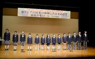 群馬朝鮮初中級学校の児童・生徒たちが朝鮮の童謡「故郷の春」を歌った