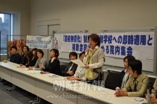 「『高校無償化』制度の朝鮮学校への即時適用と補助金復活を求める院内集会」での日本各地のオモニ会の代表