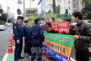 維新独裁復活させた朴槿恵政権を糾弾/韓統連、南朝鮮大使館前で抗議活動